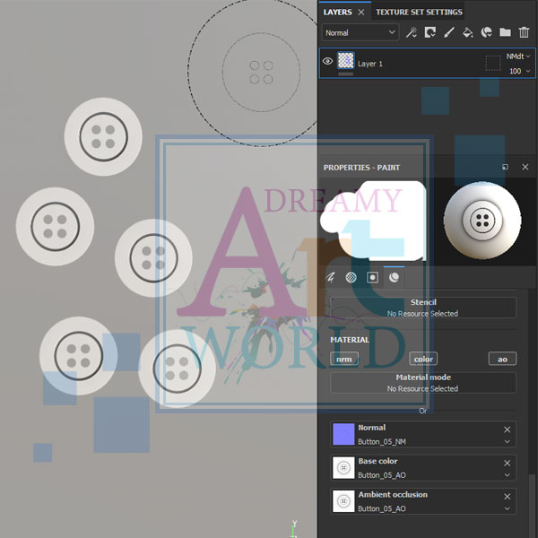 This is a substance painter stamp tool. It can be used for texturing garments and adding buttons to that garment without any polygon addition.