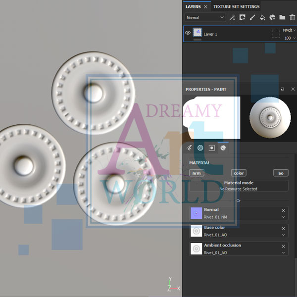 This is a substance painter stamp tool. It can be used for texturing garments and adding a Rivet on that garment without any polygon addition.