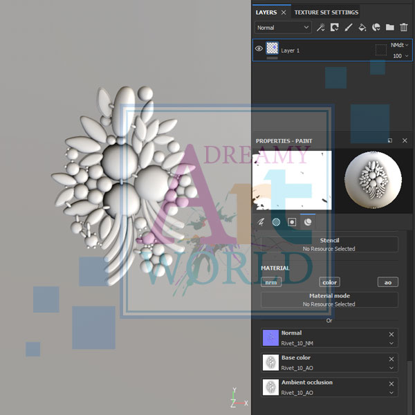 This is a substance painter stamp tool. It can be used for texturing garments and adding a Rivet on that garment without any polygon addition.