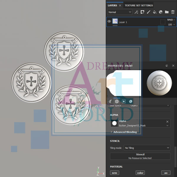 This is a substance painter stamp tool. It can be used for texturing garments and adding buttons to that garment without any polygon addition.