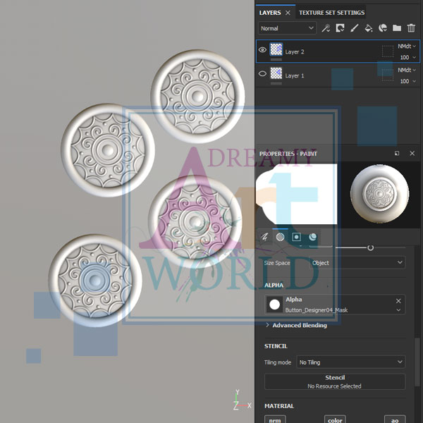 This is a substance painter stamp tool. It can be used for texturing garments and adding buttons to that garment without any polygon addition.