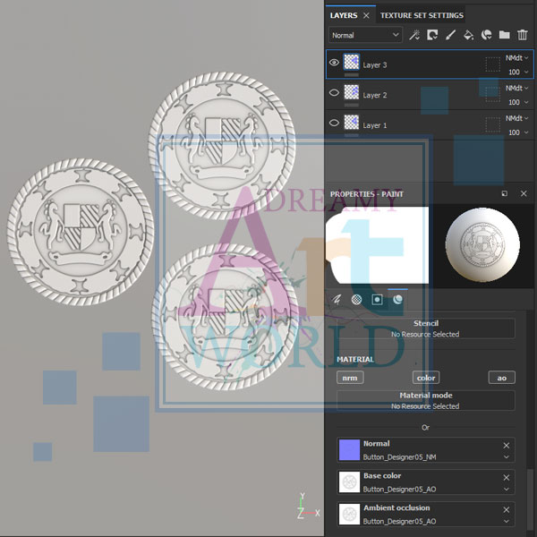 This is a substance painter stamp tool. It can be used for texturing garments and adding buttons to that garment without any polygon addition.