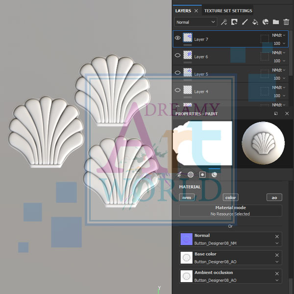 This is a substance painter stamp tool. It can be used for texturing garments and adding buttons to that garment without any polygon addition.