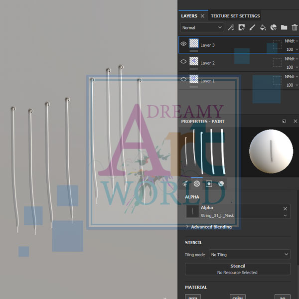 This is a substance painter stamp tool. It can be used for texturing garments and adding a String on that garment without any polygon addition.