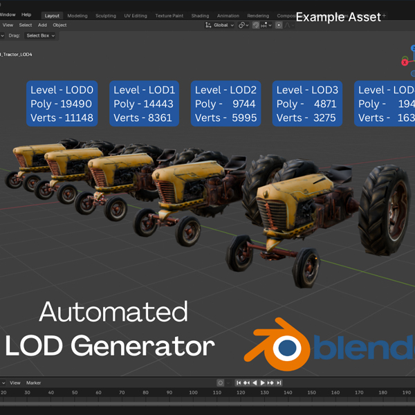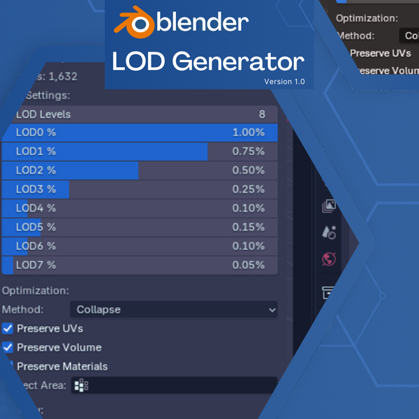 The DAW LOD Generator for Blender is a powerful, production-tested addon that automates the entire Level of Detail (LOD) workflow directly within Blender’s interface. Whether you're optimizing for Unreal Engine, Unity, WebGL, or any custom game engine, this tool helps you reduce polygon counts while preserving UVs, volume, and materials—without manual effort.